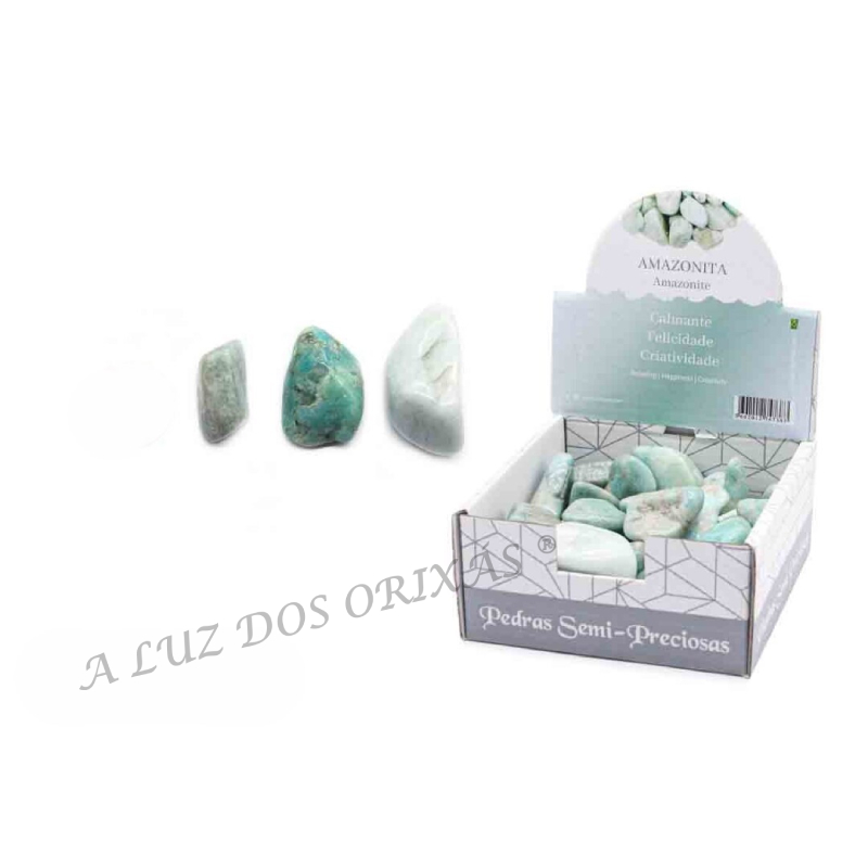 A Amazonita é uma pedra extremamente relaxante. Acalma o cérebro, o sistema nervoso e alinha o corpo físico com o etérico. Equilibra as energias feminina e masculina assim como muitos aspetos da personalidade.