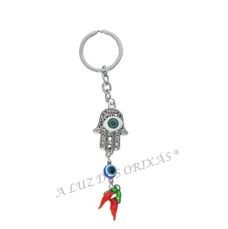 Início Amuletos e Talismãs Porta Chaves Olho Turco e Pimenta Vermelha