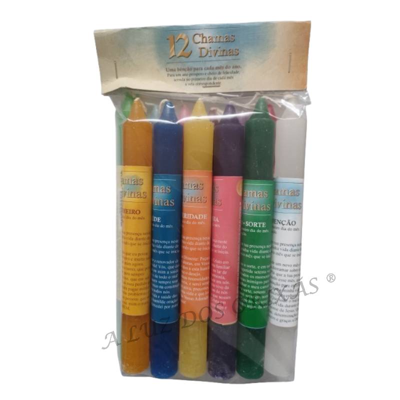 Conjunto de 12 velas de chama sagrada.